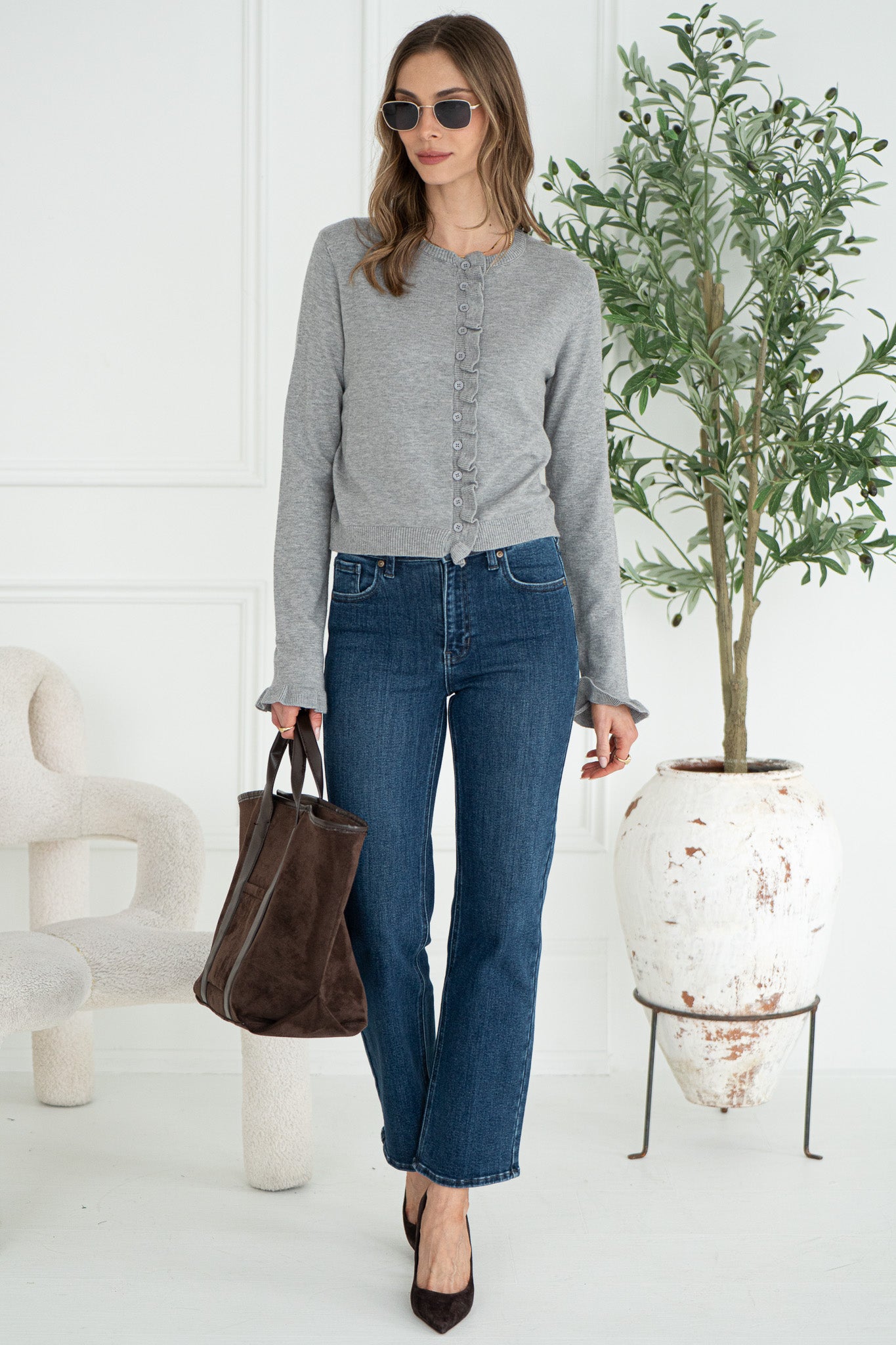 Styled with: Daan Straight Leg Jeans, Nikita Gold Plated Necklace, Fuchsia Gold Plated Necklace, Jennings Gold Plated Earrings, Mabelle Gold Plated Bracelet, Joanna Gold Plated Bracelet, Lyndon Gold Plated Ring, and Arin Gold Plated Ring.