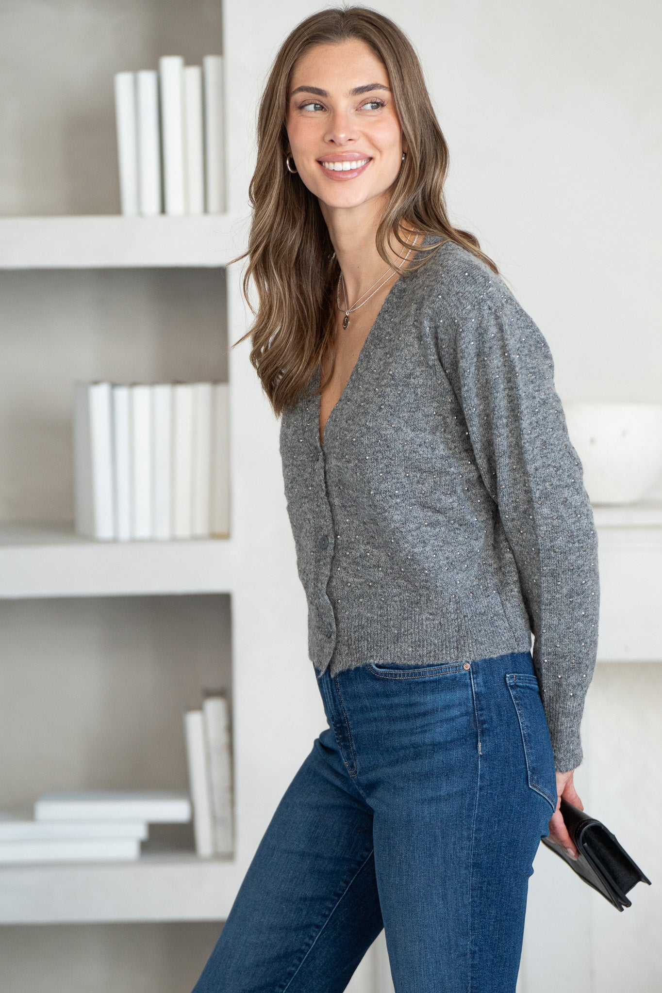 HELLO DARLIN STUD CARDIGAN