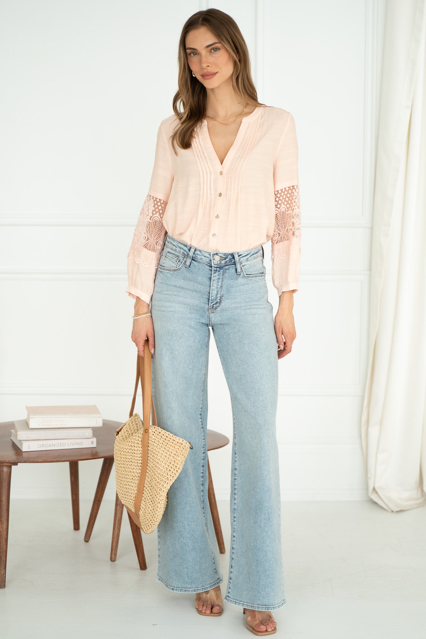 Styled with: Click Wide Leg Jeans -LB, Autumn Gold Plated Hoop Earrings, Ronja Gold Plated Necklace, Pam Gold Plated Necklace, Indie Stretch Bracelet -PI, Indie Stretch Bracelet -WH, Mabelle Gold Plated Bracelet, Lulu Sun Gold Plated Ring, and Lulu Double Wave Gold Plated Ring.