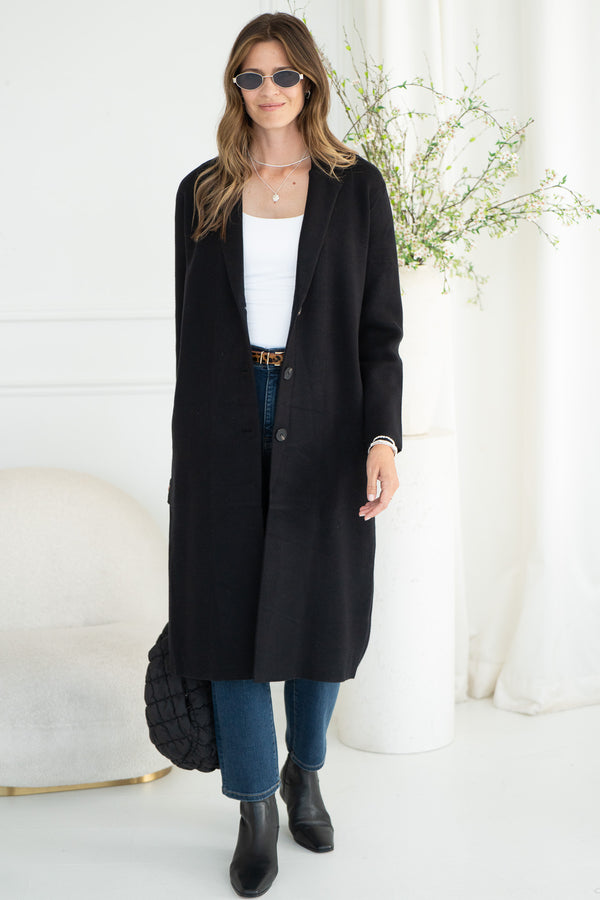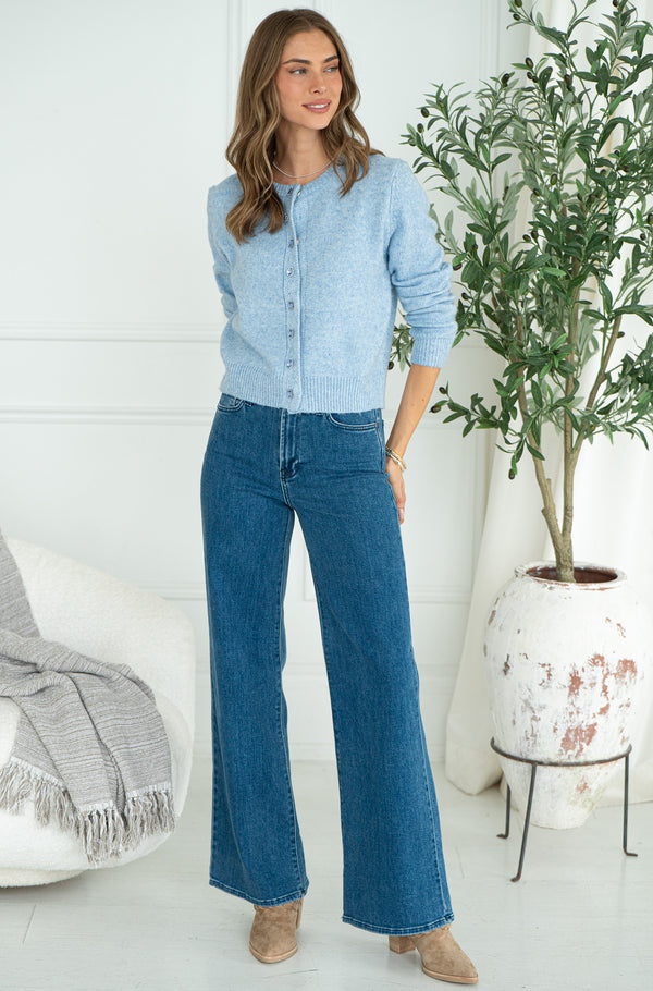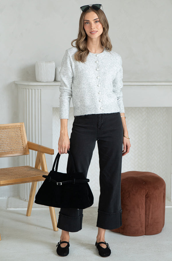 AISHA CRYSTAL BUTTON SWEATER-BL