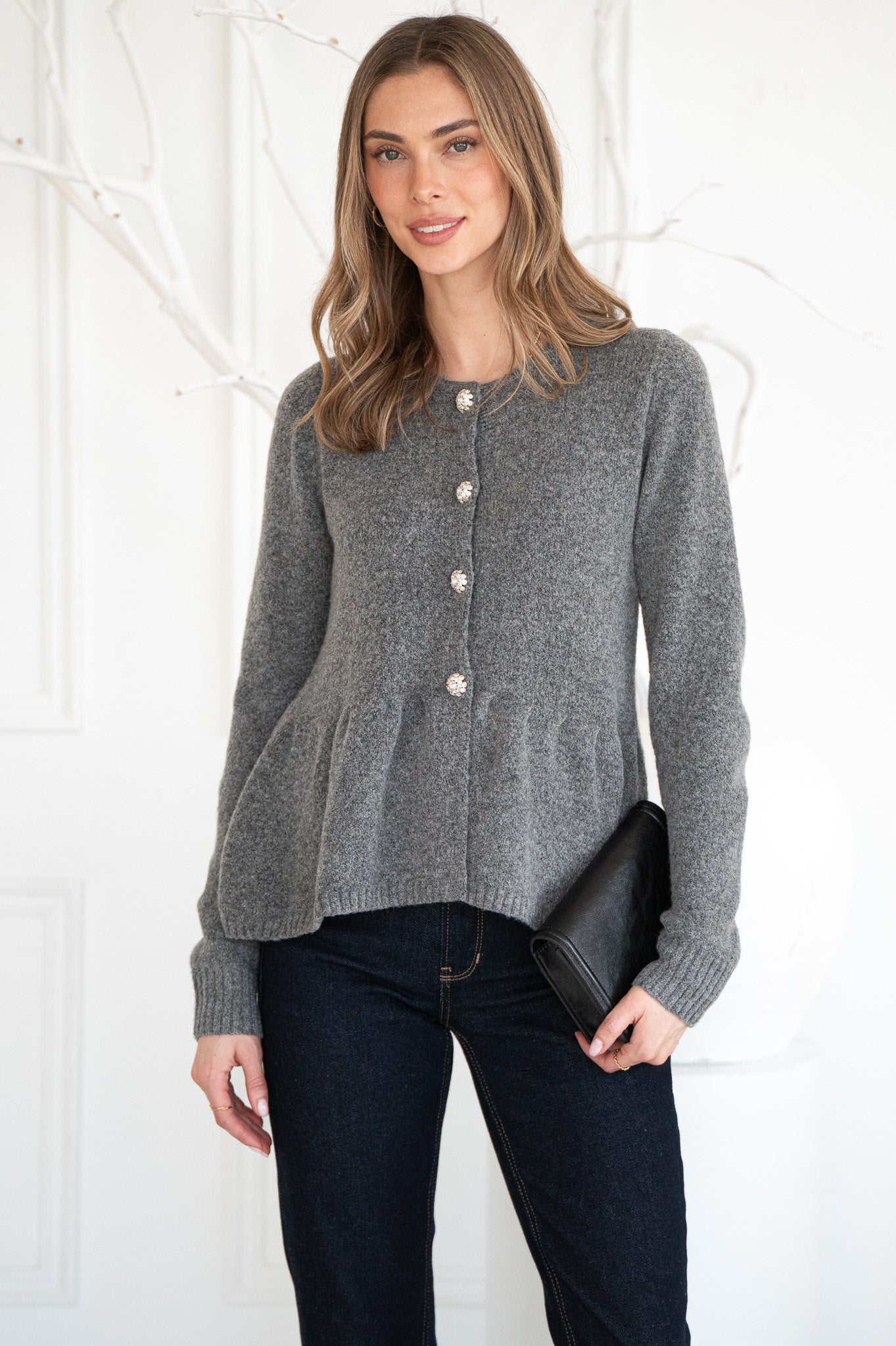 DAVIE CRYSTAL BUTTON CARDIGAN