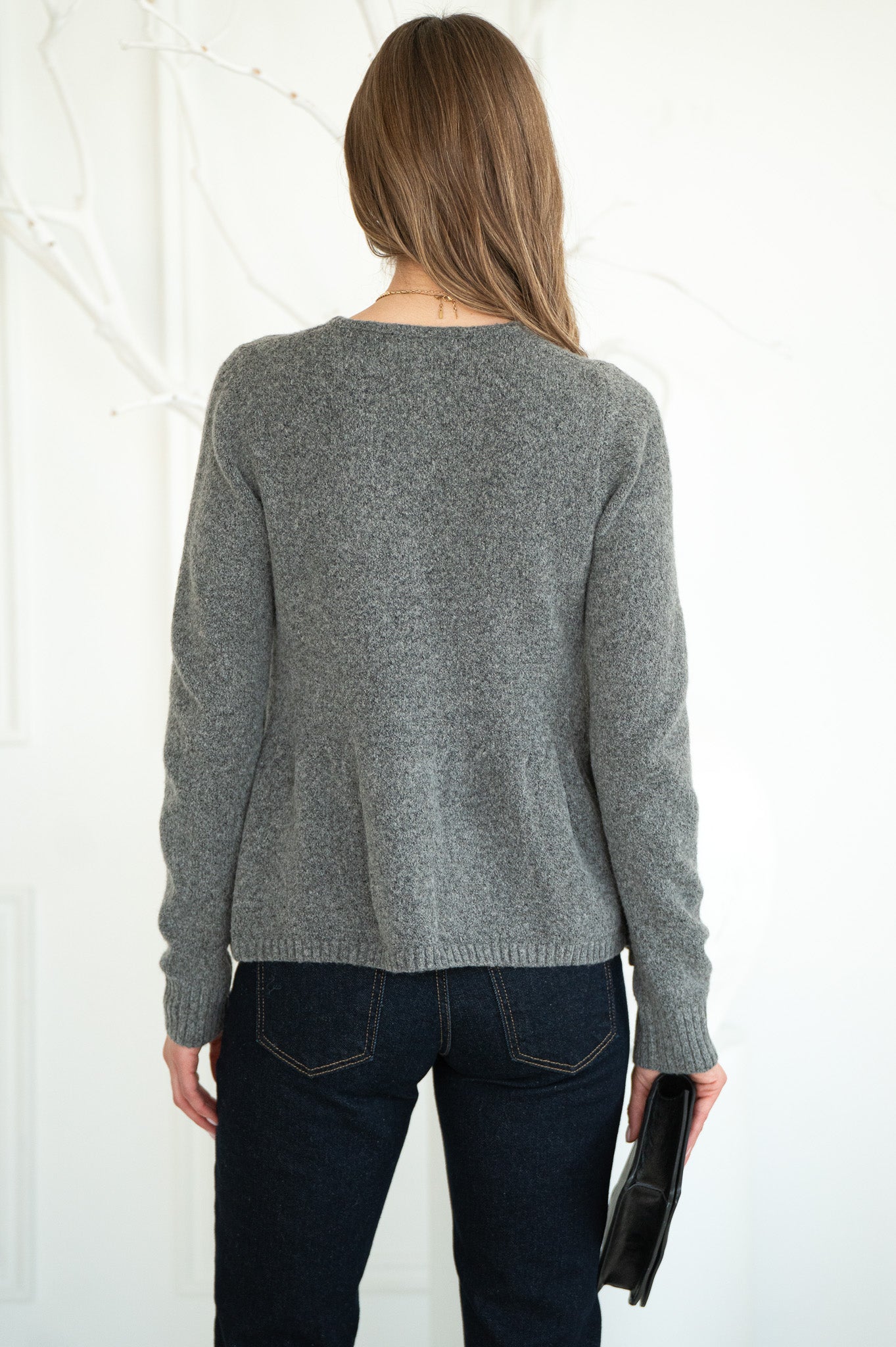 - Cardigan style button front closure