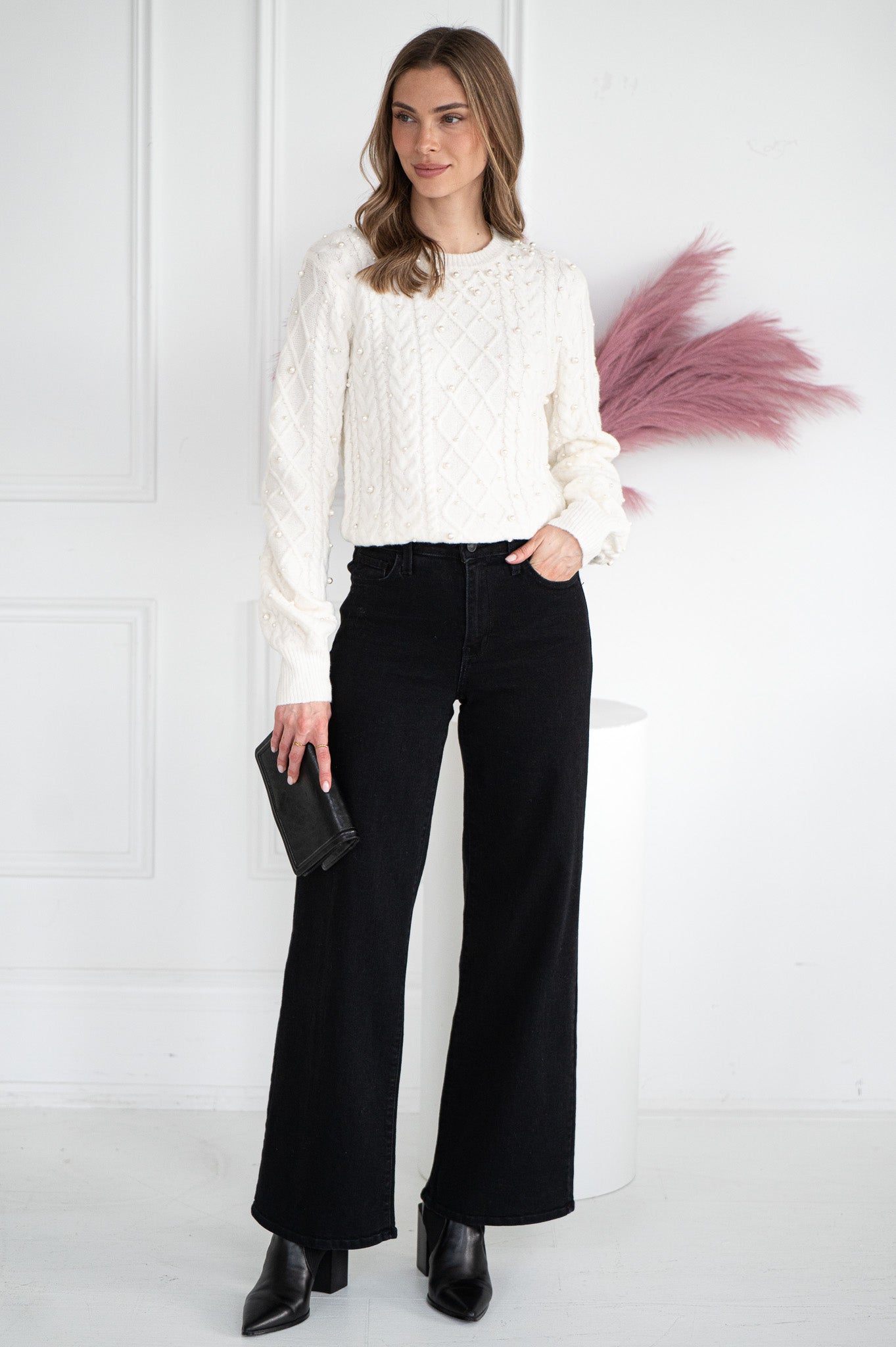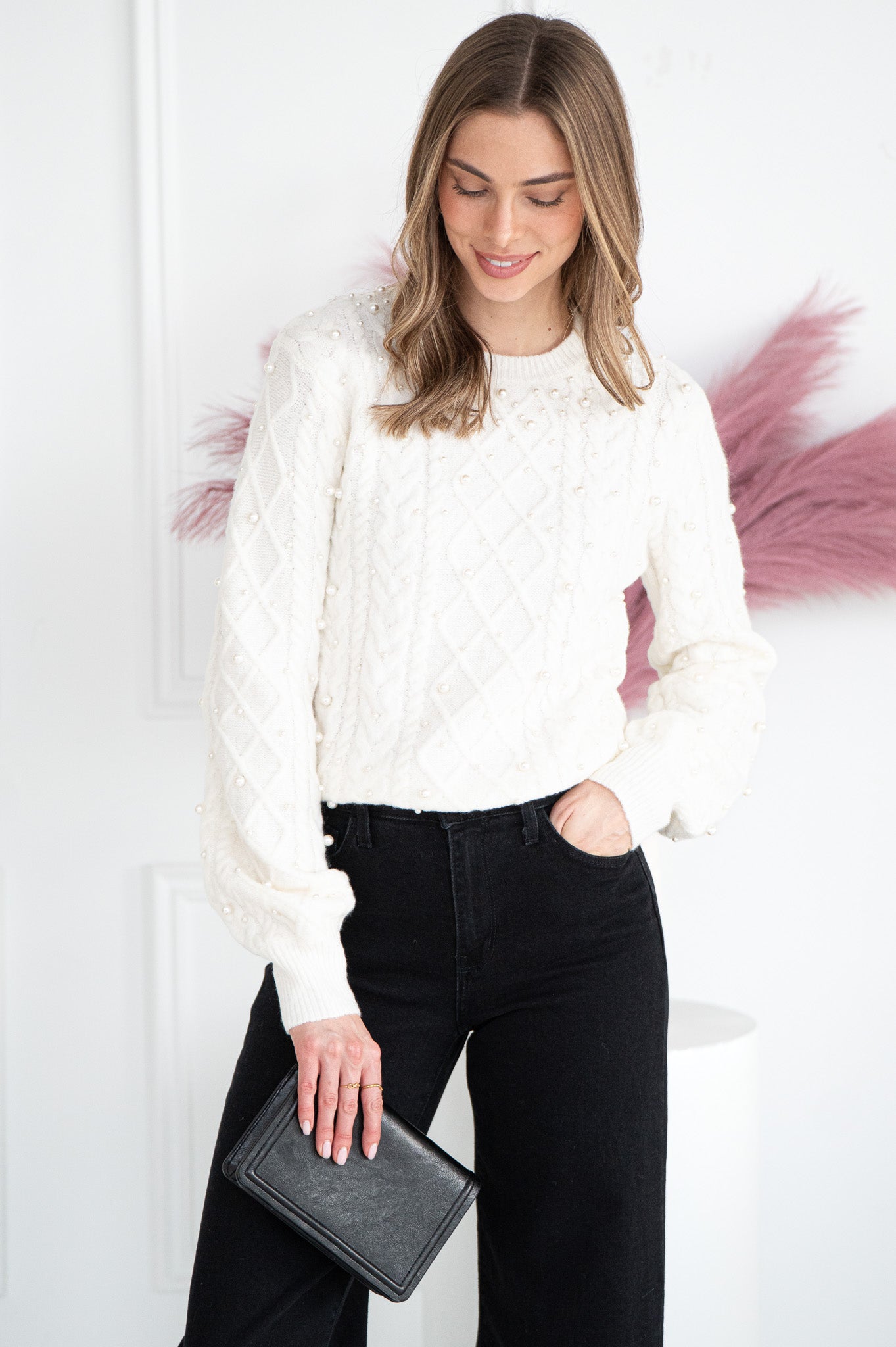 LUX PEARL CABLE KNIT SWEATER