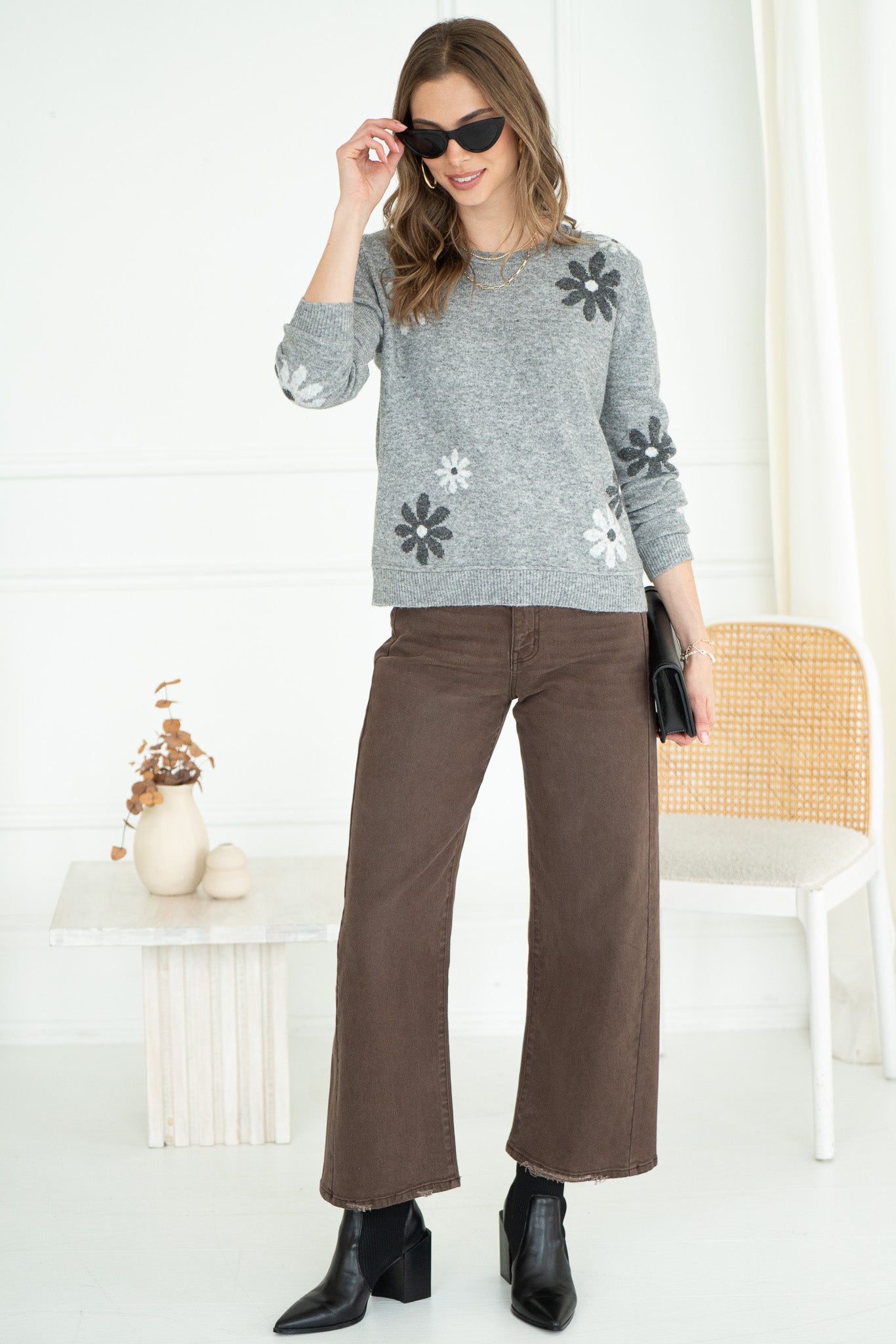 - Ribbed knit detailing on neck, cuffs, and hemline
